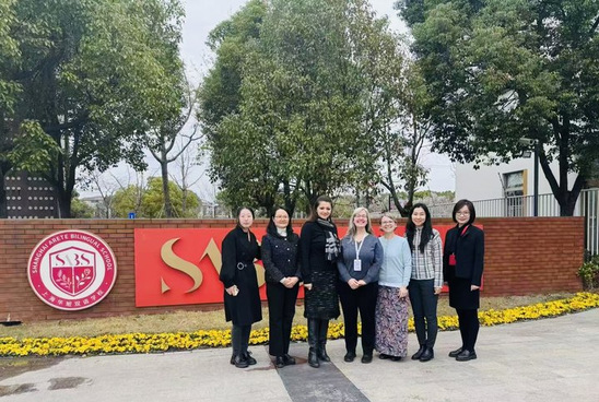 2025年3月14日,天华学院北亚利桑那学院副院长梁杰、教育学院教师朱学敏带领北亚利桑那大学派遣来校授课的外方教授Dr. Rebecca Brown, Dr. Alisa Ashley, Dr. Qian Chen等访问上海华旭双语学校,开展教育交流活动。本次访问旨在加强高等教育与基础教育之间的合作,探索教育实践融合与跨文化教育协作的新路径,展示中国基础教育实践成果。华旭双语学校总校长龚德辉、校长助理徐嘉乐、幼儿园园长Shefali Lakhina、副园长张燕飞、园长助理金传凤、小学部校长张虹、人力资源部总监肖晓玲及校长秘书王宇昕等校领导热情接待了访问团。